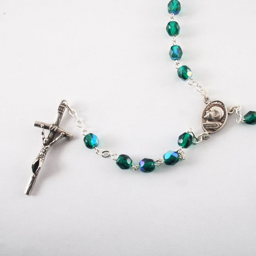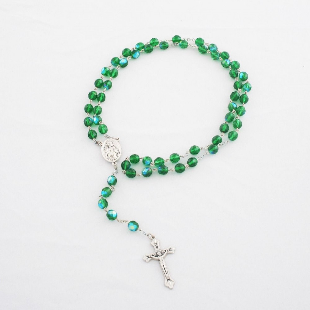 Rózsafüzér-Csiszolt kristály-zöld